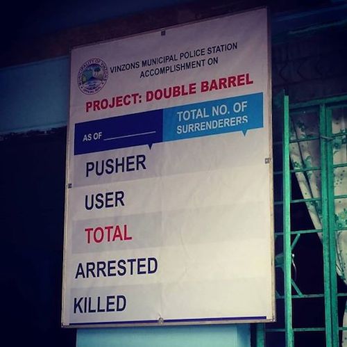 | A police Project Double Barrel “kill list” in the small Bicol town of Vizons. Such a quiet town apparently has no statistics. Photo: David Robie |