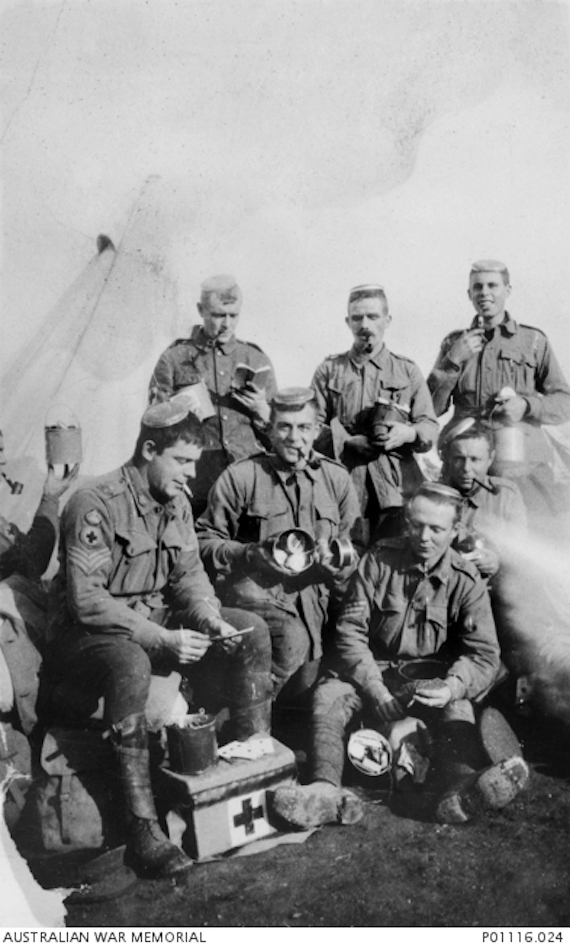 Members of the 4th Australian Field Ambulance at Christmas in Lemnos in 1915. Australian War Memorial