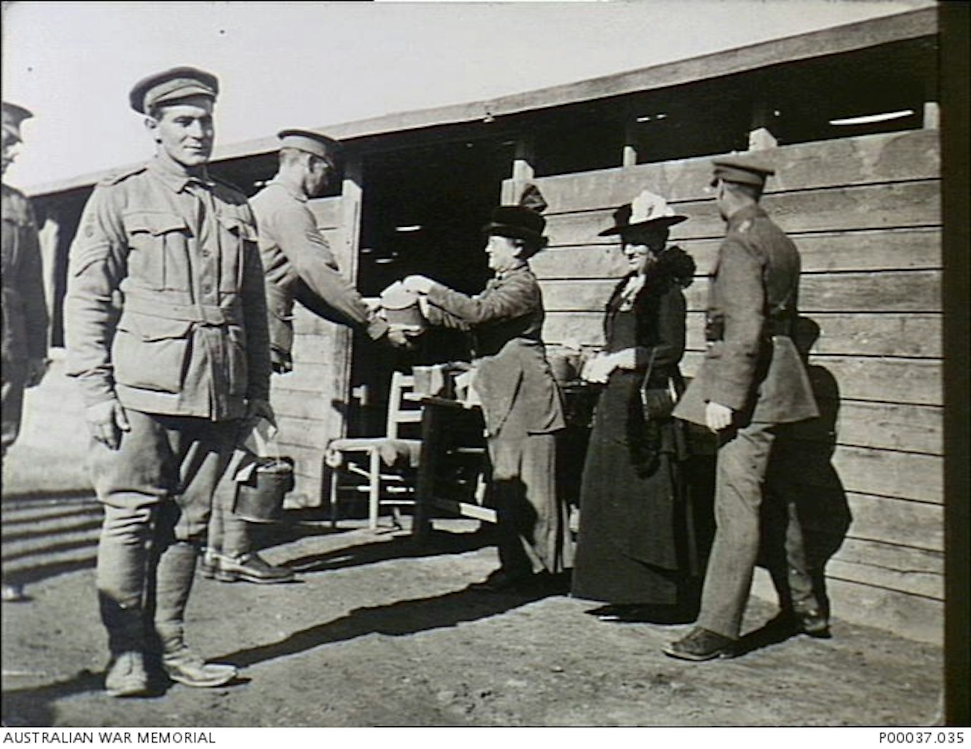Women distribute Christmas billies to men in Cairo, Egypt, December 1915. Australian War MemorialChristmas hampers and billies sent from home provided particular joy to those lucky enough to receive them. Some, however, experienced Christmas dinners like that of Private John Chugg of 1st Light Horse Field Ambulance, who complained “it was a miserable Xmas” in Egypt in 1914: “boiled beef unpeeled potatoes and tea without milk… [and] no mail or anything to cheer us”.
