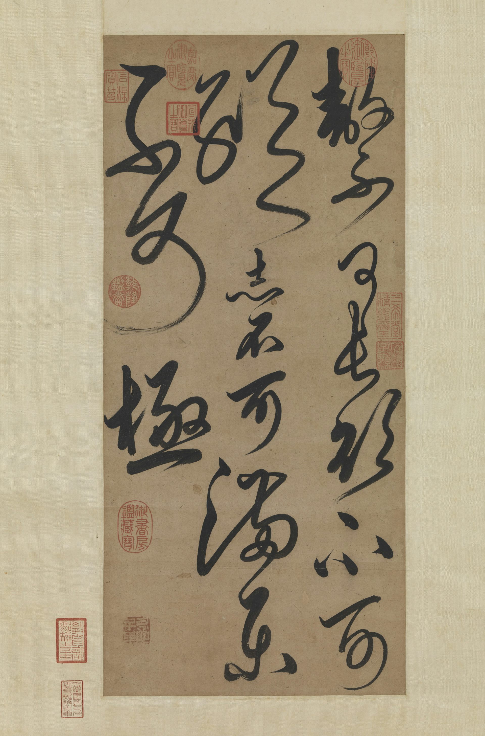 Still, what might be called the limpid rigidity of his scripts actually can prepare the untutored viewer for the wider range of graphic forms in the older Song stele rubbing of 18 scripts of Mengying (active after the 900s). This set of mannerisms has long antecedents in China, including the Bound tablets for the shan sacrifice of the Tang Emperor Xuanzong of 725, shown elsewhere in the exhibition.