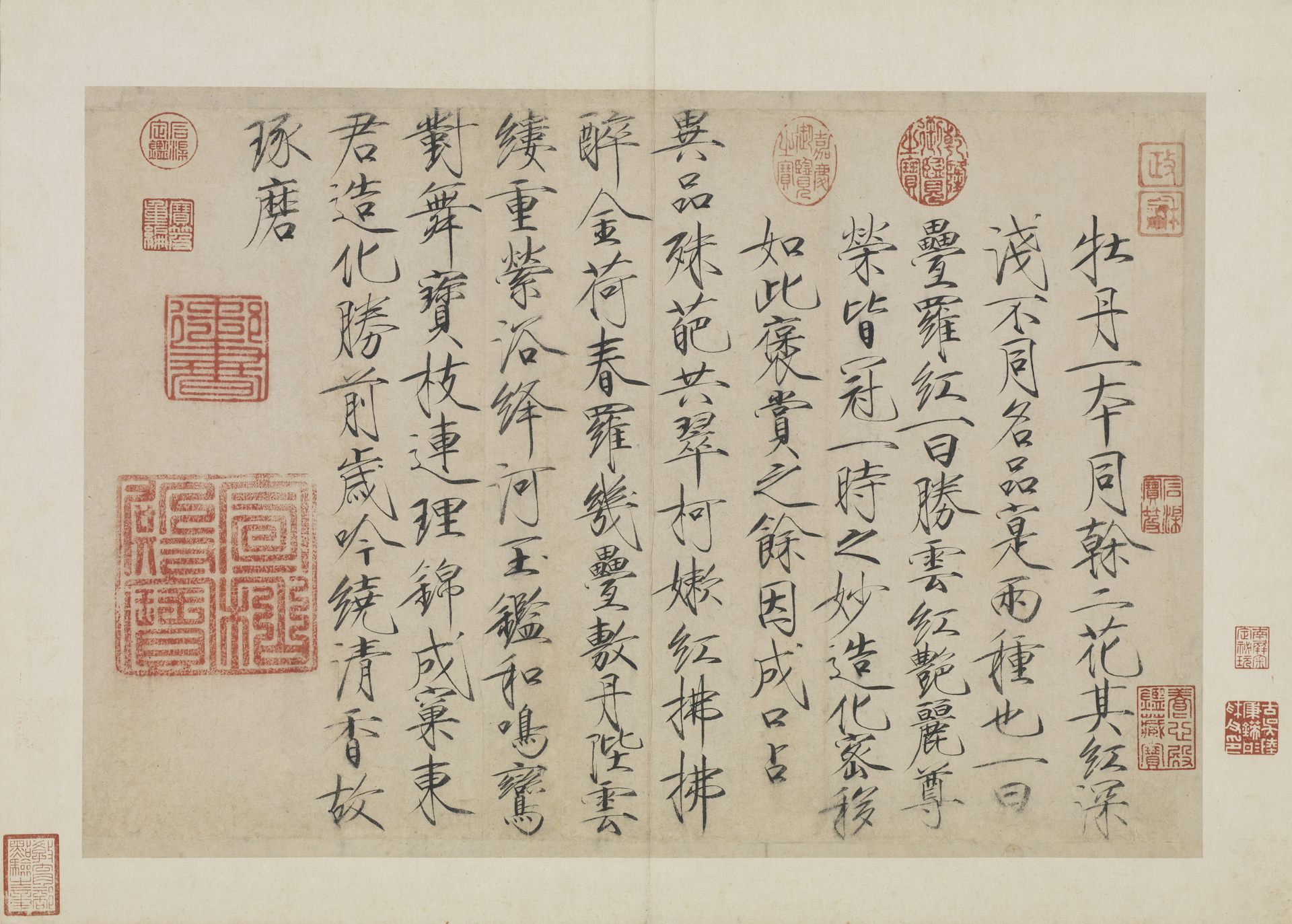 Song dynasty 960–1279, Emperor Huizong (1082–1135; (reign 1101–25), ‘Poem on peonies in. regular script’, album leaf, ink on paper, 34.8 x 53.3 cm National Palace Museum, Taipei. Photo: © National Palace Museum, Taipei