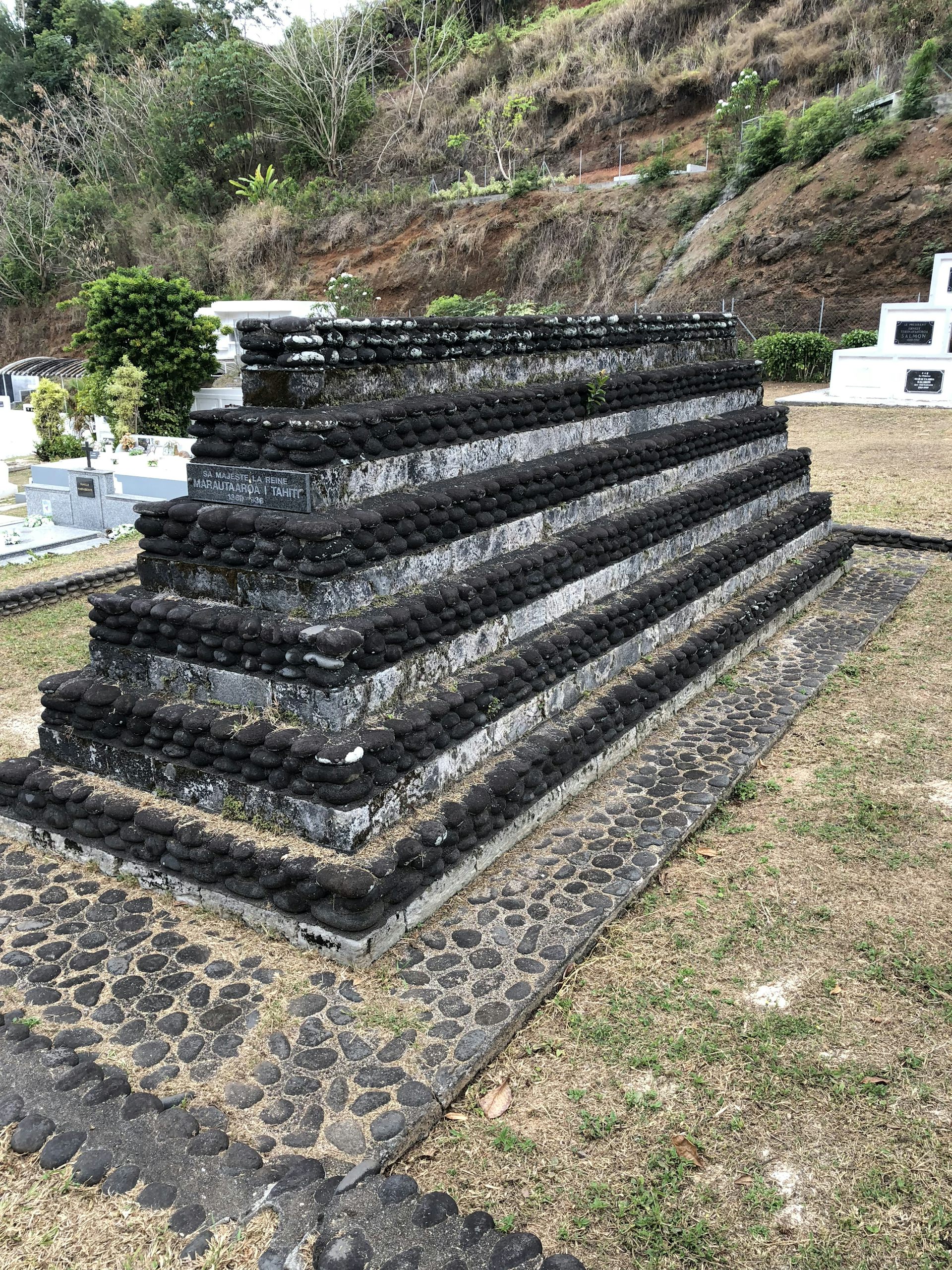 Nothing reflects this better than Marau’s grand tomb at Uranie cemetery just outside of Papeete. Her tomb, taking the form of the grand Teva-family marae, Mahaiatea, it is a tribute to one of Tahiti’s greatest cultural and spiritual monuments.