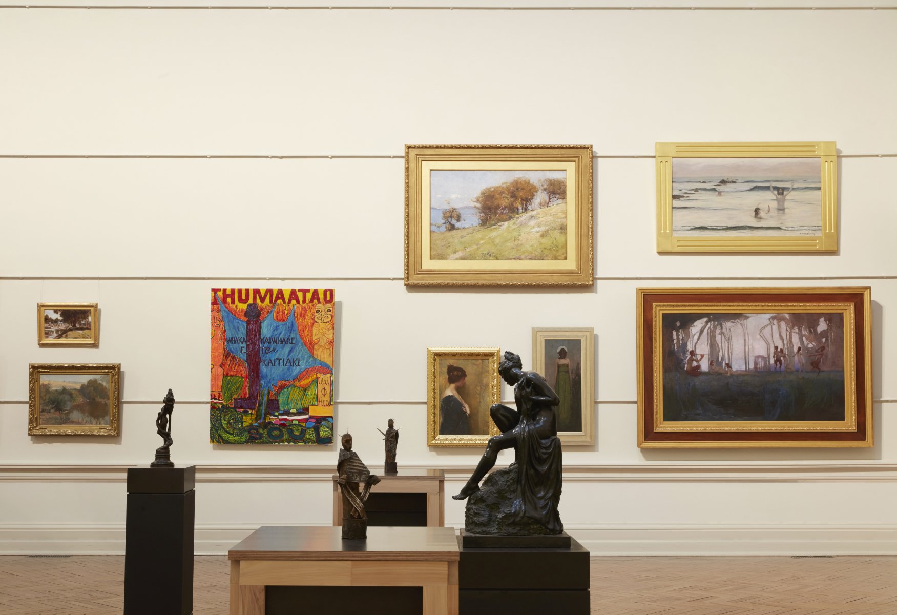 Works by Maori artist Emily Karaka, African Mostaff Muchawaya and Haitian Karim Bleus are dispersed among the Glovers, Streetons, von Guérards and Mackennals, offering alternative portrayals of identity and claims to sovereignty.