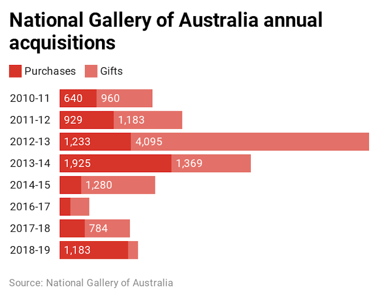 Over the last decade, the gallery has added an average of 2,134 items to its collection each year, including 863 new purchases.