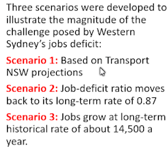 So, the total growth in jobs from 2016-36 assigned to Western Sydney’s strategic centres is 95,400. That leaves over 300,000 jobs to be found by 2036 from growth somewhere else in Western Sydney.