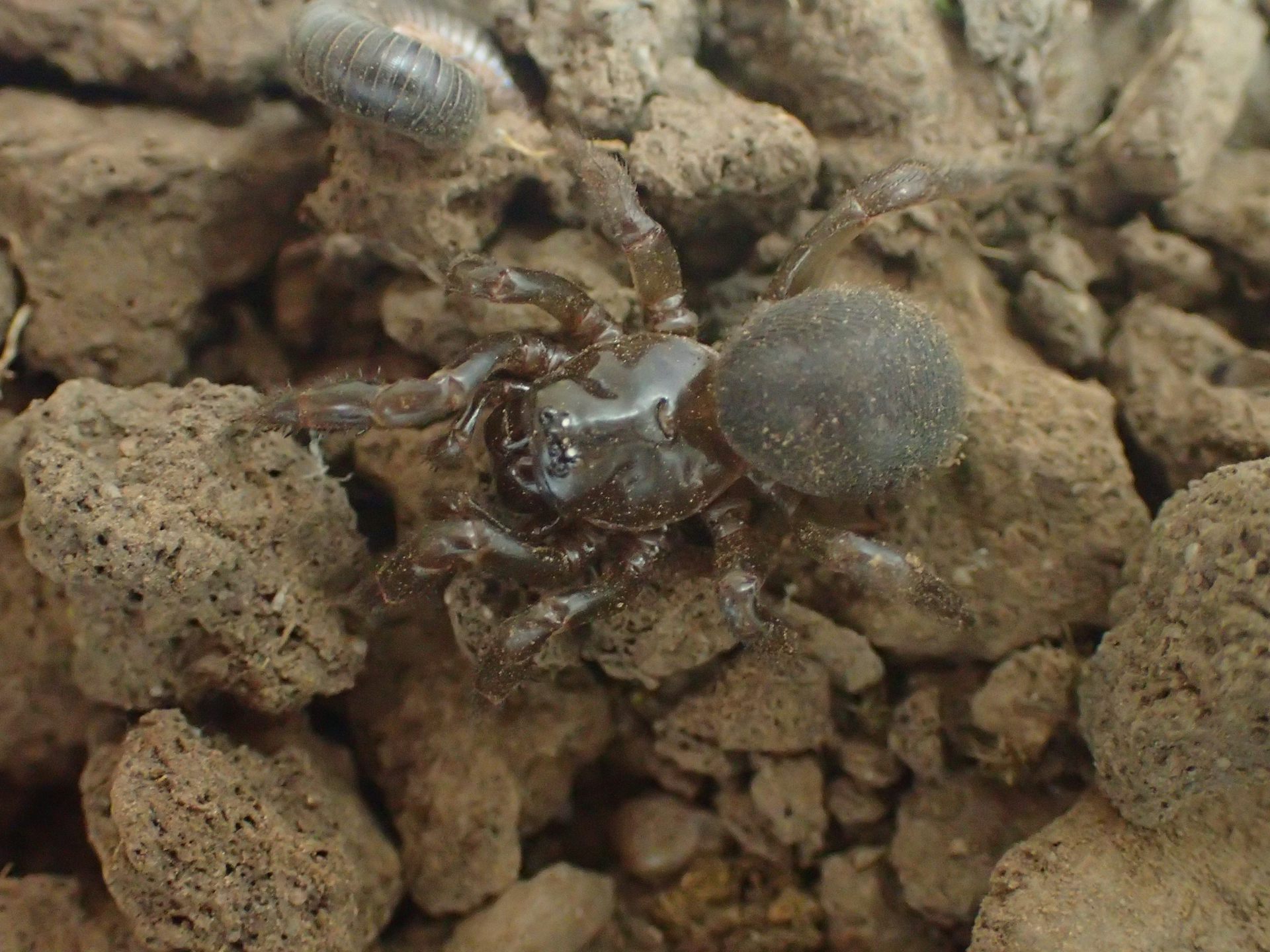 The Kangaroo Island Micro-trapdoor spider has an interesting history. It is the only member of its genus found in Australia, its closest relative being in Africa. Studies show it arrived here between 2 and 16 million years ago, likely rafting across the ocean on vegetation! A true voyager.