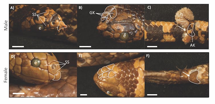 Photo of full snake by Max Jackson; photos of tactile receptors by Chris Jolly, Author provided
