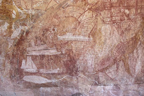 Working with Aboriginal Traditional Owners, especially members of the Lamilami family, our new research focuses on the Namunidjbuk clan estate within the Wellington Range in the Northern Territory. We looked closely at one particular type of rock art — boats in the form of Macassan praus and European ships.