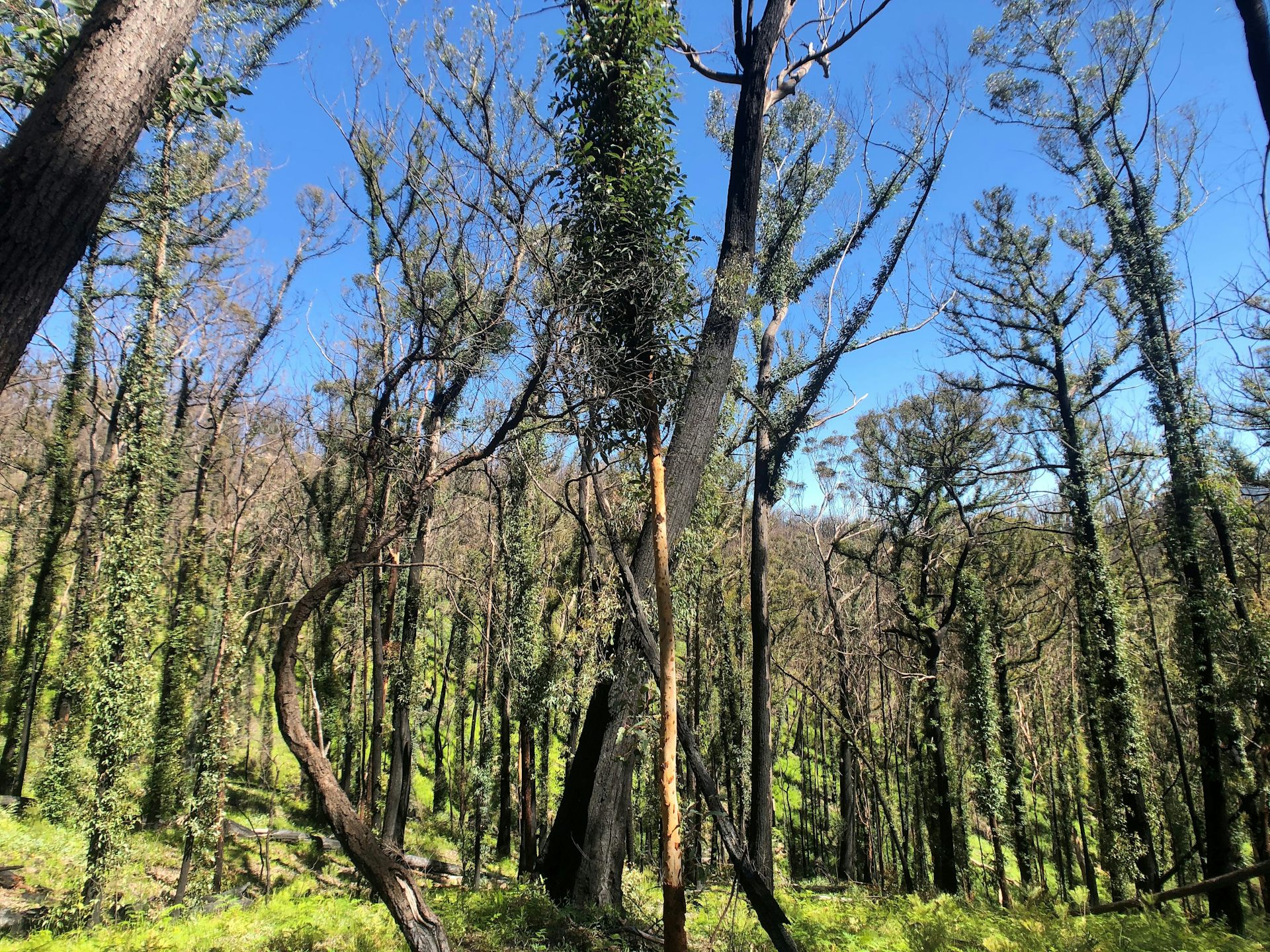 Ash forests are one of the most iconic in Australia, home to some of the tallest flowering plants on Earth. When severe fire occurs in these forests, the mature trees are killed and the forest regenerates entirely from the seed that falls from the dead canopy.