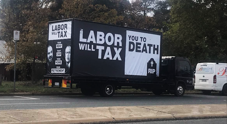 A mobile billboard parked at locations around Canberra during the 2019 election.