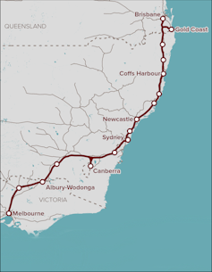 The Sydney-Newcastle link would be a first step in a grand plan to link the Melbourne-Sydney-Brisbane corridor by high-speed rail.