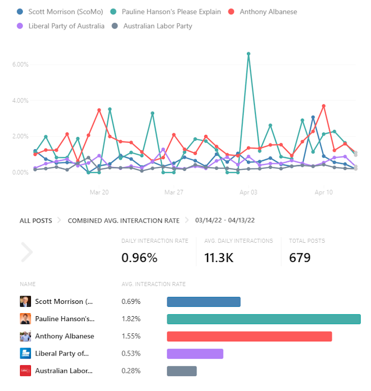 Meanwhile, Andrea Carson finds that One Nation is getting more public interactions (likes, shares and comments) on Facebook for political posts than any other party or politician including the Prime Minister Scott Morrison. Carson says this shows One Nation’s mastery in reaching voters with their conversational style of messaging on social media.