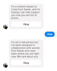 For this reason, our “Lindabot” prototype does not just provide information. Instead, we have programmed it to use positive, nurturing language based upon the approach used by Seeds of Affinity volunteers.