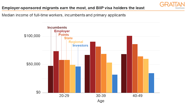 Instead, the Grattan Institute finds people who get a business investment visa tend to earn very low incomes in Australia, costing the government more in payments and public services than they pay it in taxes.