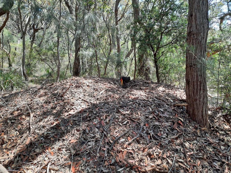 During light rain, male brush-turkeys open up their mound, letting much-needed moisture soak in to speed up decomposition of the leaf litter. But as strong rainfall approaches, they instead pile extra material on top of their mound, providing an extra layer of protection and creating a more conical shape so water can run off the sides.