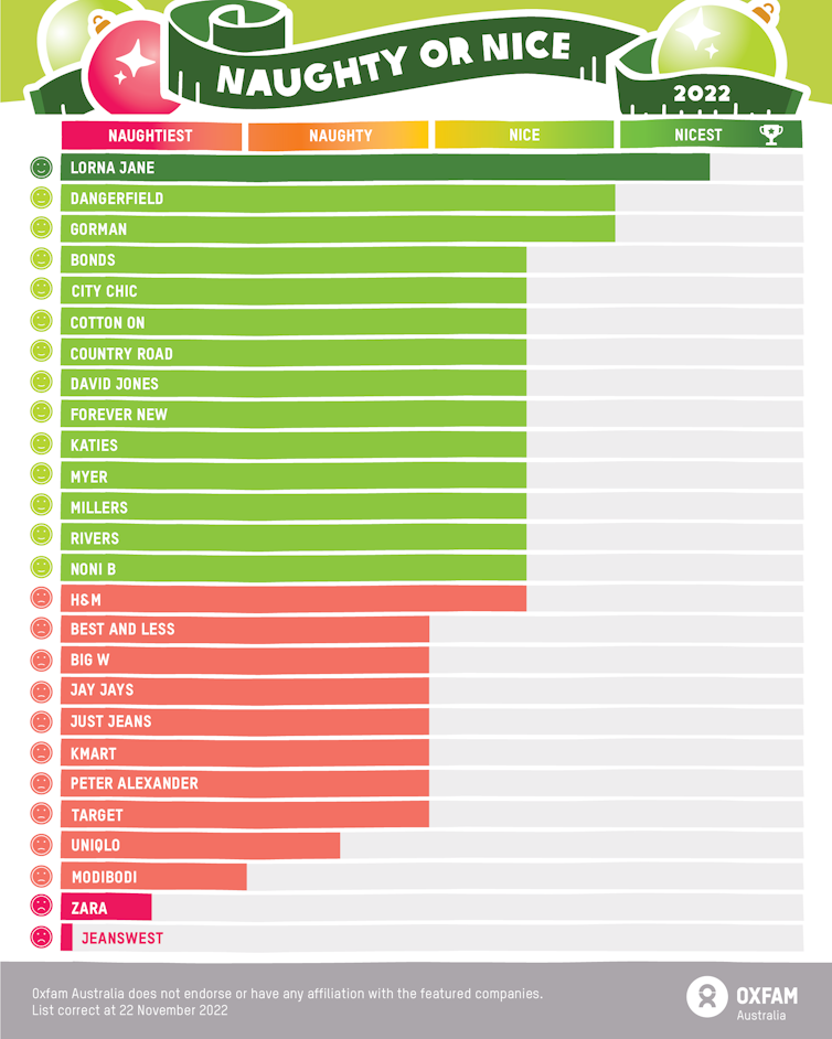 Today Oxfam released its annual Naughty or Nice list. This list highlights retail brands committed to transparent sourcing, separating labour costs in price negations, and conducting a wage gap analysis to work towards paying workers a living wage.