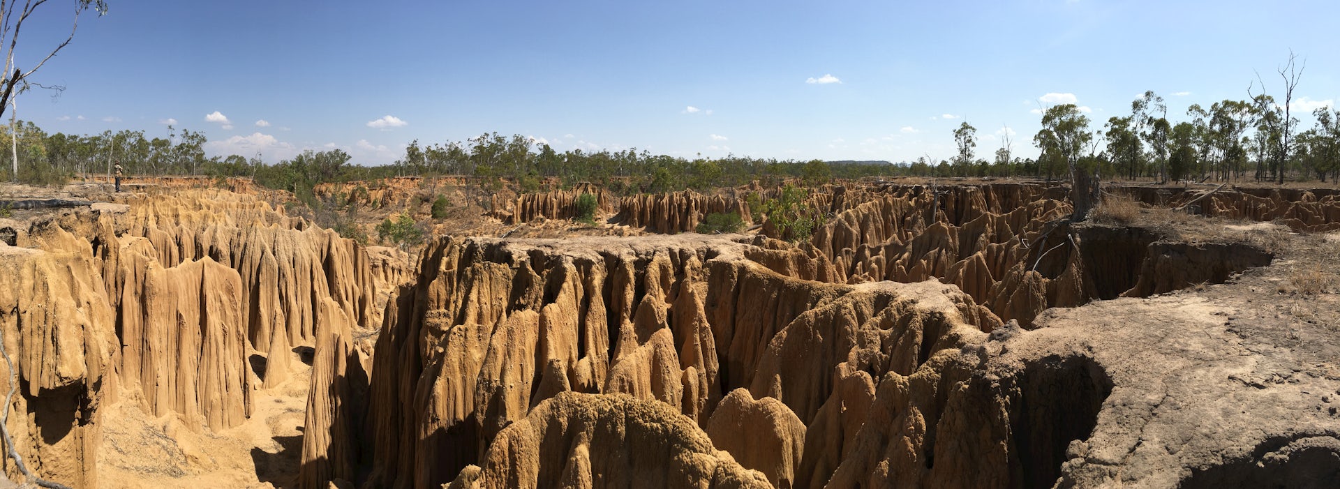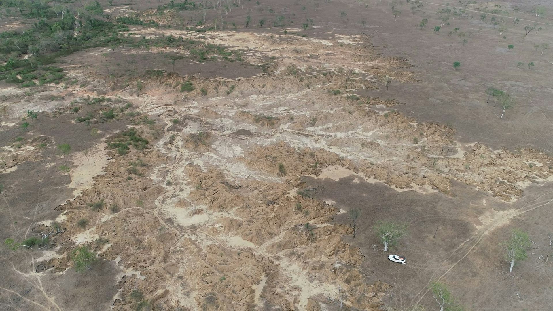 Each wet season, the exposed soils in these gullies turn to a yoghurt-like consistency. Their chemistry primes them to readily erode, which they do with every raindrop that falls on them.