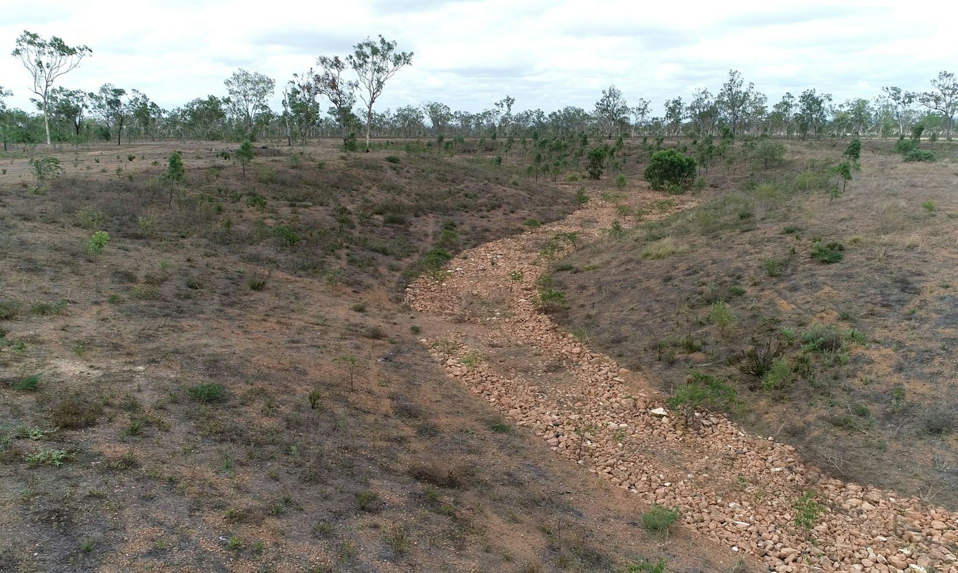 Stabilising gullied landscapes requires an approach akin to mine site rehabilitation. In 2016, we demonstrated that if you reshape (with major earthworks), recap (with rock, soil and mulch) and revegetate the gullies, you can rapidly repair them. Our research has shown that erosion from priority gullies can be reduced by 98% within a space of one to two years.
