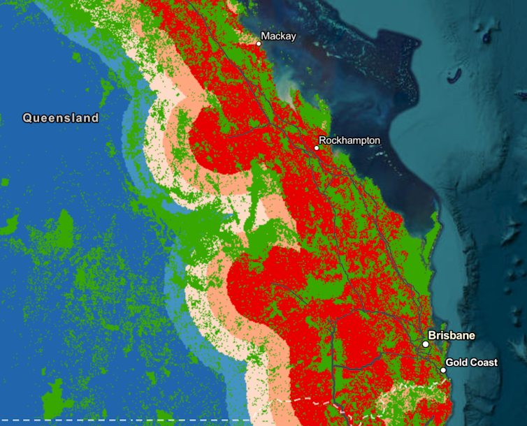 Queensland’s best wind and solar sites follow the coastal transmission lines north from Brisbane.