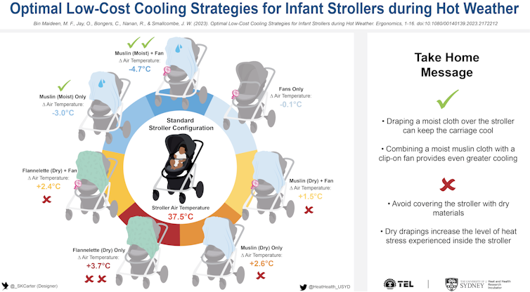 – ref. Covering your baby’s pram with a dry cloth can increase the temperature by almost 4 degrees. Here’s what to do instead – https://theconversation.com/covering-your-babys-pram-with-a-dry-cloth-can-increase-the-temperature-by-almost-4-degrees-heres-what-to-do-instead-199099