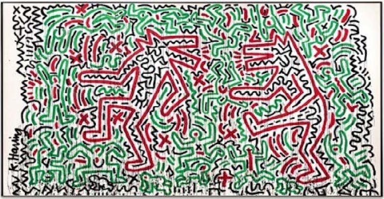 Haring and Basquiat emerged from the streets as graffiti artists, and rose to prominence in the 1980s New York East Village. Both had brief but incredibly productive careers, cut short by HIV-related illness (Haring) and drug overdose (Basquiat).