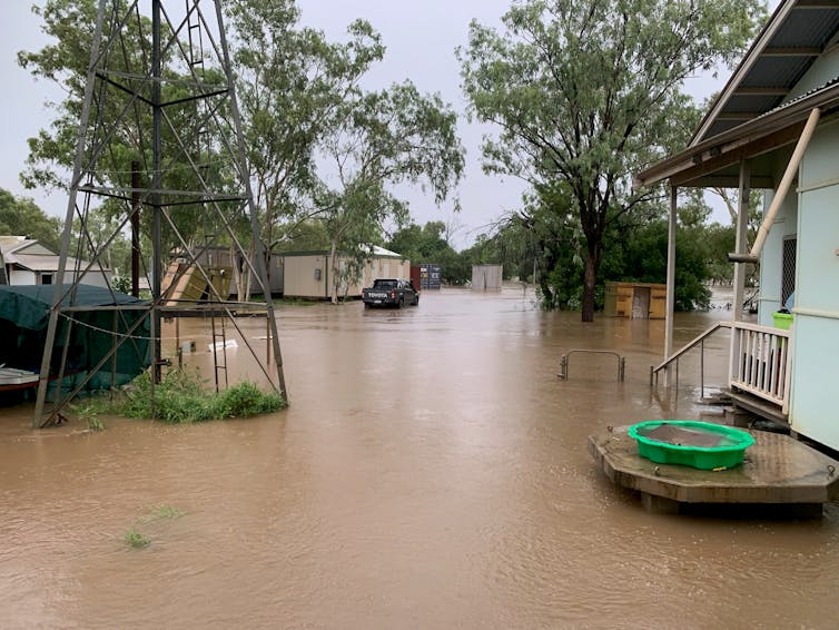 Rising floodwaters in Darlngunaya, a community near Fitzroy Crossing, WA.
