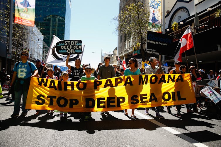 The Waiho Papa Moana hikoi protesting against deep sea drilling at the New Zealand Petroleum Summit in 2014.