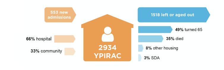 Two-thirds of younger people enter residential aged care from hospital. They may not be able to return to their previous home because it isn’t wheelchair accessible or they need a high level of paid support.