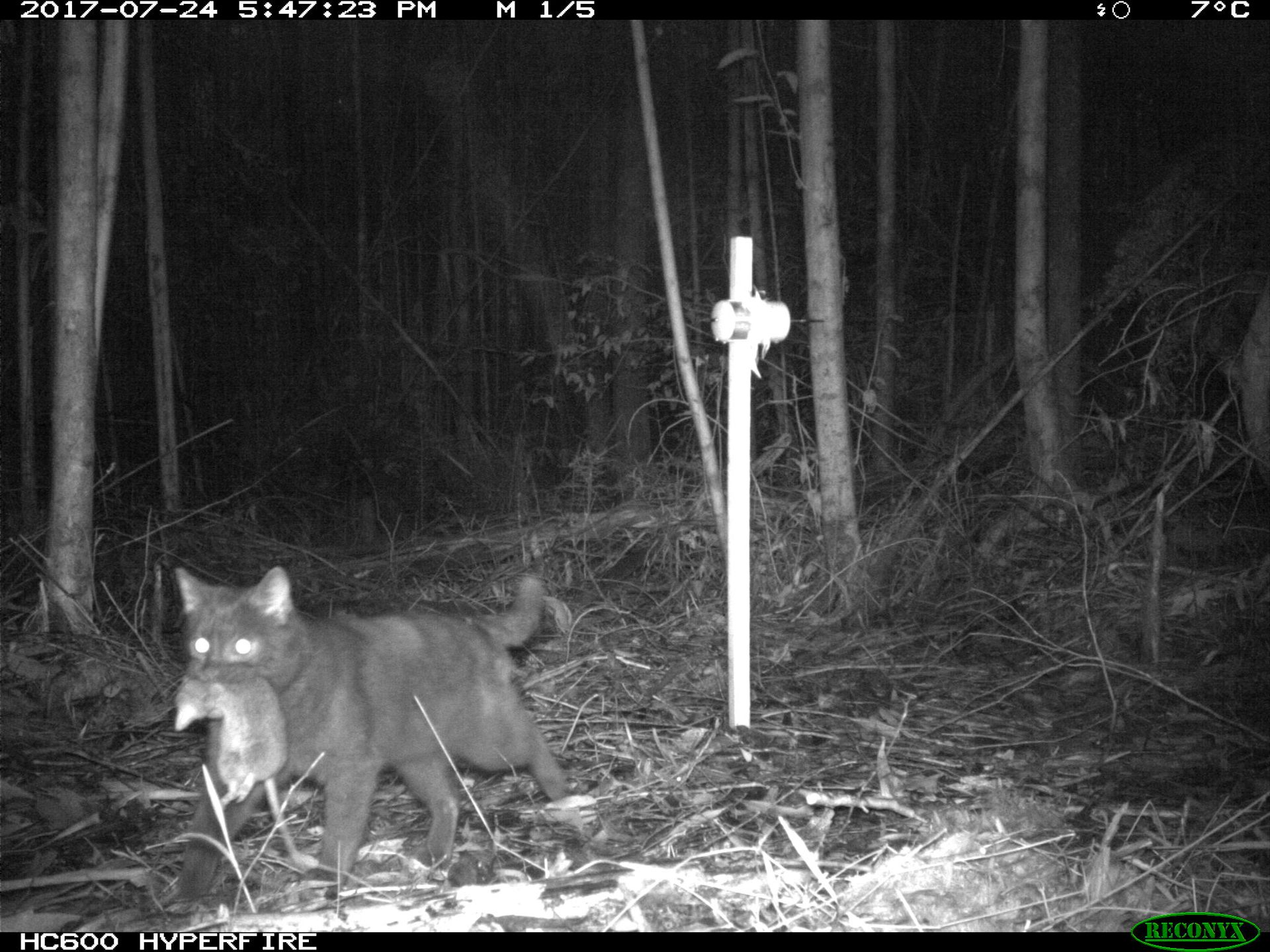 Feral cat behaviour also varied with fox control and forest type, including how visible cats were, how far they moved, and what times of day they were active.