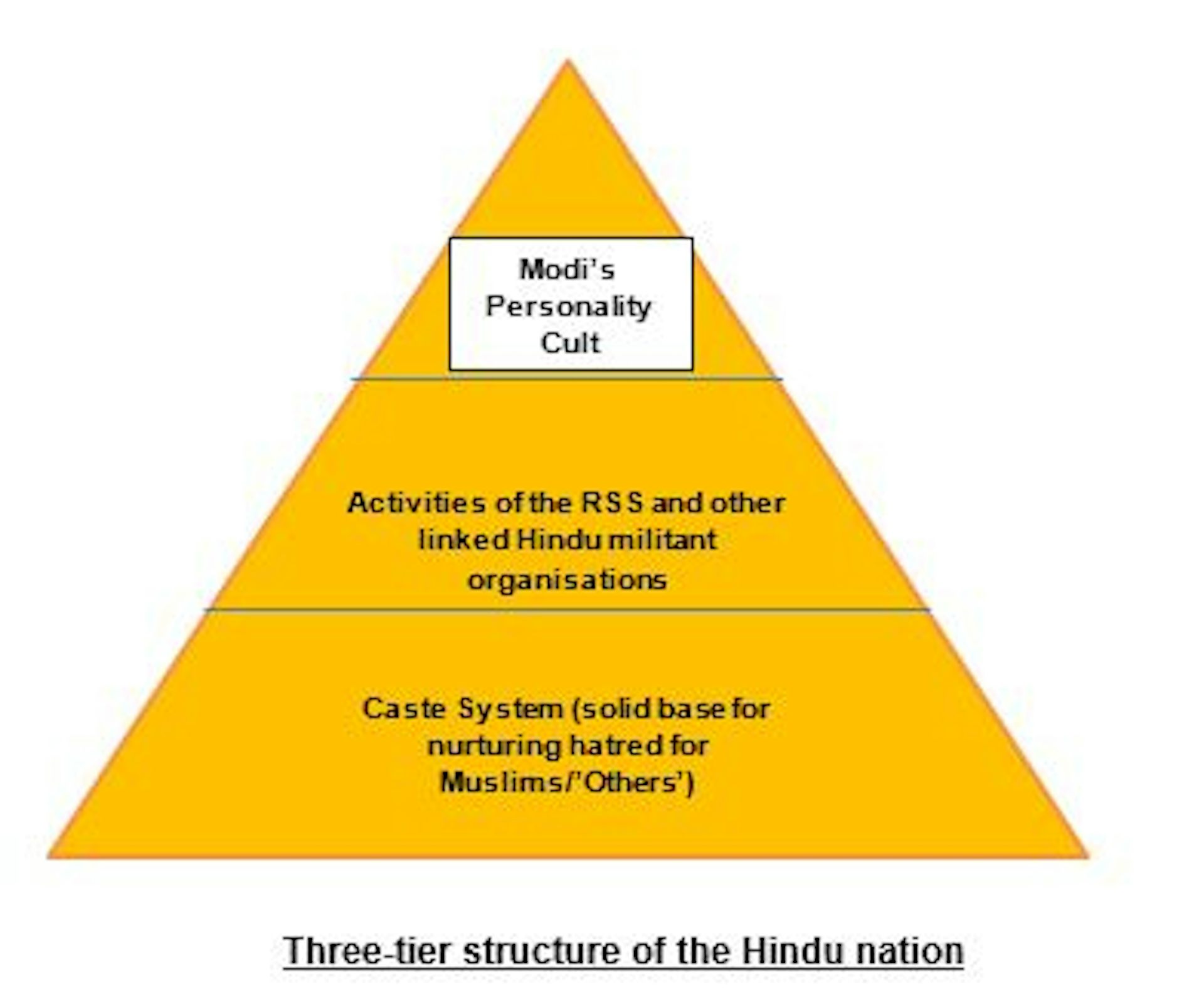 On the topmost tier is Modi’s personality cult. The social legitimacy of Modi’s government is drawn from the base upwards, while the commands for his political project come from the top down.