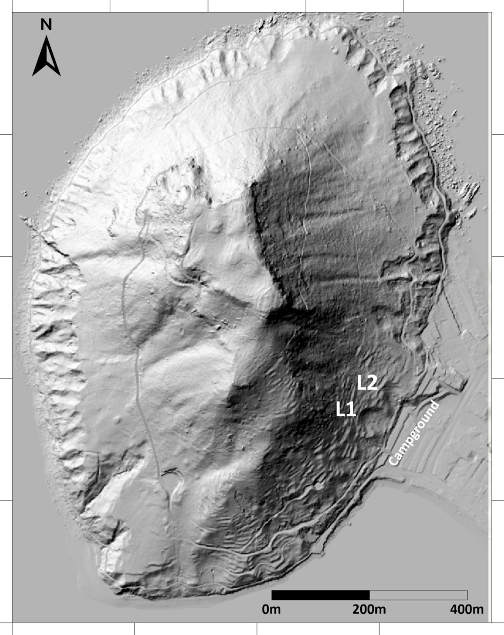 New high-resolution mapping now allows scientists to see this in unprecedented detail. A 2024 LiDAR-derived digital elevation model, which effectively strips away vegetation to reveal the bare land surface, shows numerous landslide features across the slopes.