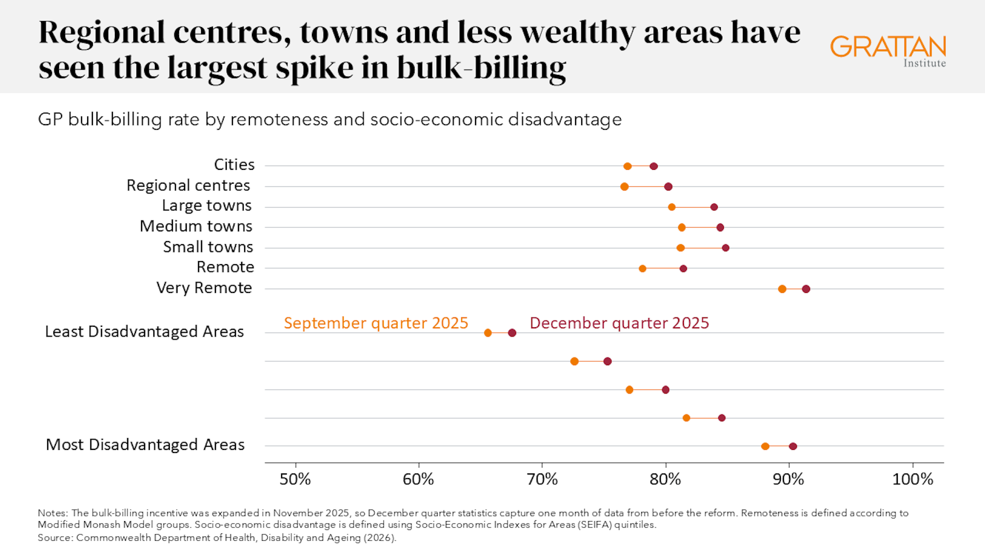 From November 2025 to January 2026, 81.4% of GP services were bulk-billed, up from 77.1% for the same period a year earlier.