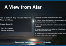 PODCAST: A View from Afar – Paul G. Buchanan: “The sad fact, though, is that the US is the center of our earthly geopolitical universe, serving as the first rock to drop in the global pond whose ripple effects are extensive, negative, and washing up in unexpected and unforeseen ways. That rock, in fact, is a black hole sucking the remnants of the rule based order into oblivion, or if not oblivion, irrelevance in a new age of power politics (might makes right, etc.). It is a dark force from which things as they exist cannot return.”