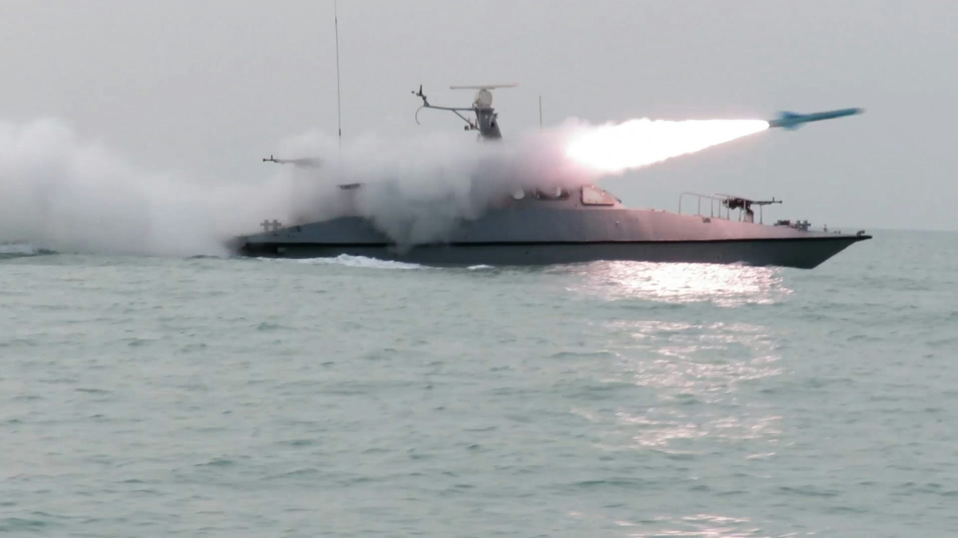 The IRGC conducting a military drill in the Strait of Hormuz on February 16, nearly two weeks before the US-Israel attacks. Sepah News handout/EPA