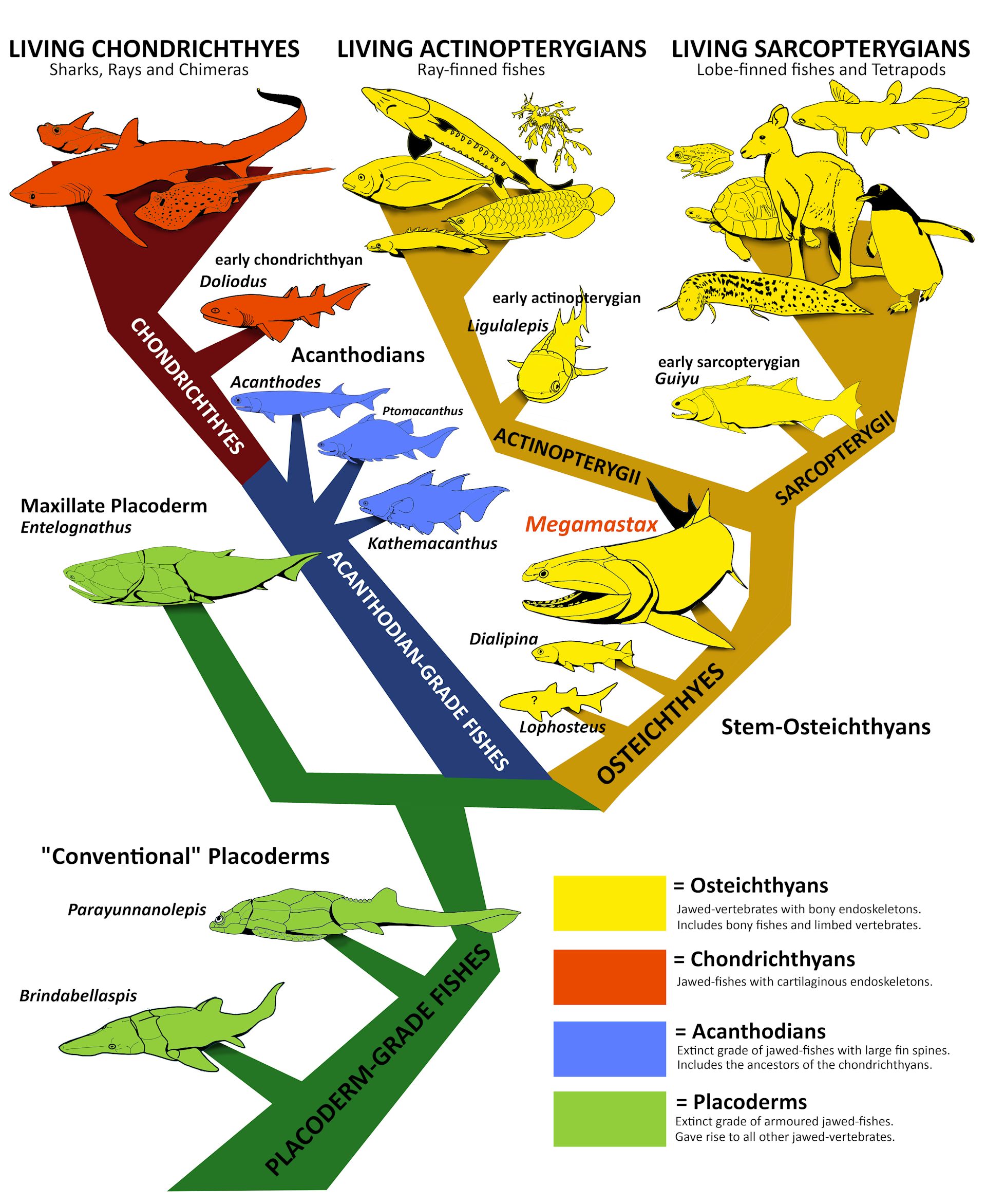 If correct, then Megamastax is the closest known form to the common ancestor of the ray-finned and lobe-finned fishes.