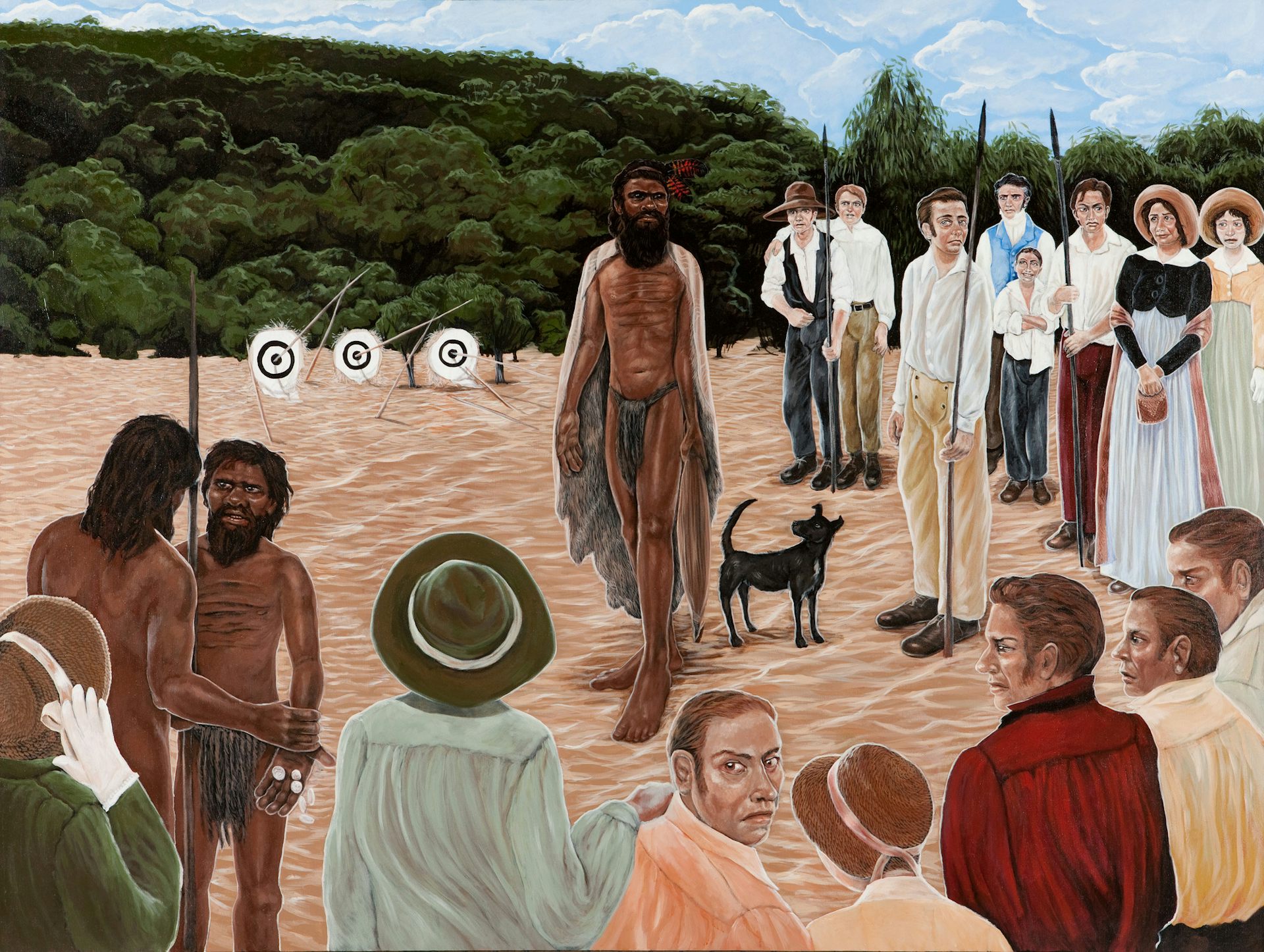 I also love Julie Dowling’s painting of Noongar warrior Yagan, surrounded by colonisers – homogenous and dull in their aspect and appearance.