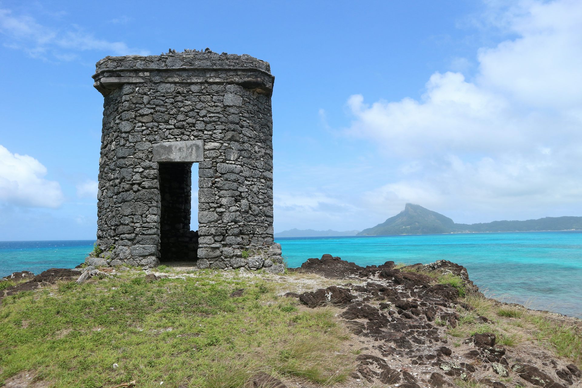 Today, the islands are home to about 2,000 people, many of whom work on the pearl farms in the idyllic turquoise lagoon. Dotted across the islands are the remains of dozens of remarkable pieces of architecture: homes built from coral.