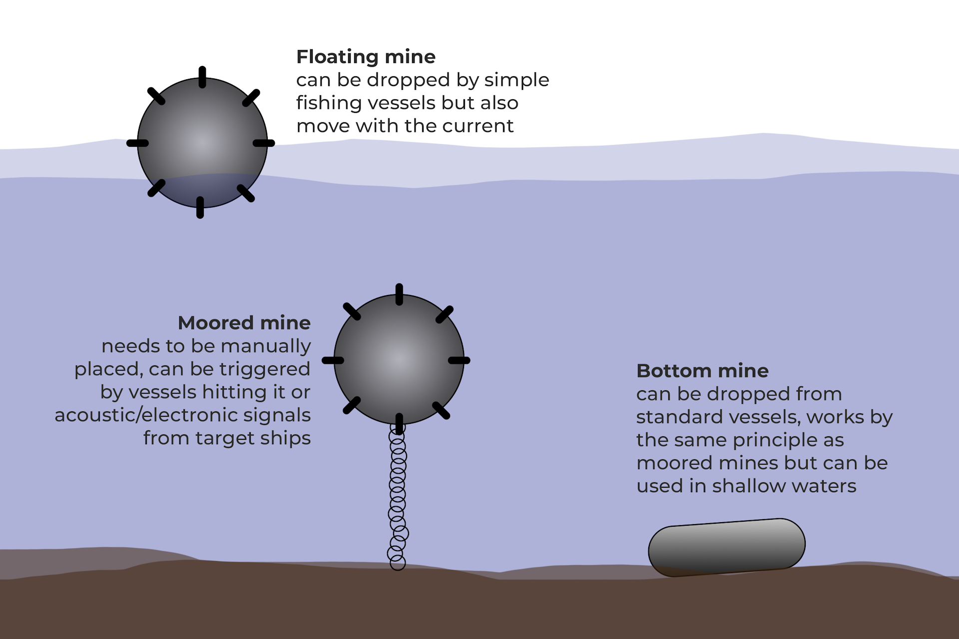 The possible types of mines Iran may have laid in the Strait of Hormuz, though there has been no clear evidence mining has occurred. NYT, CC BY-SA
