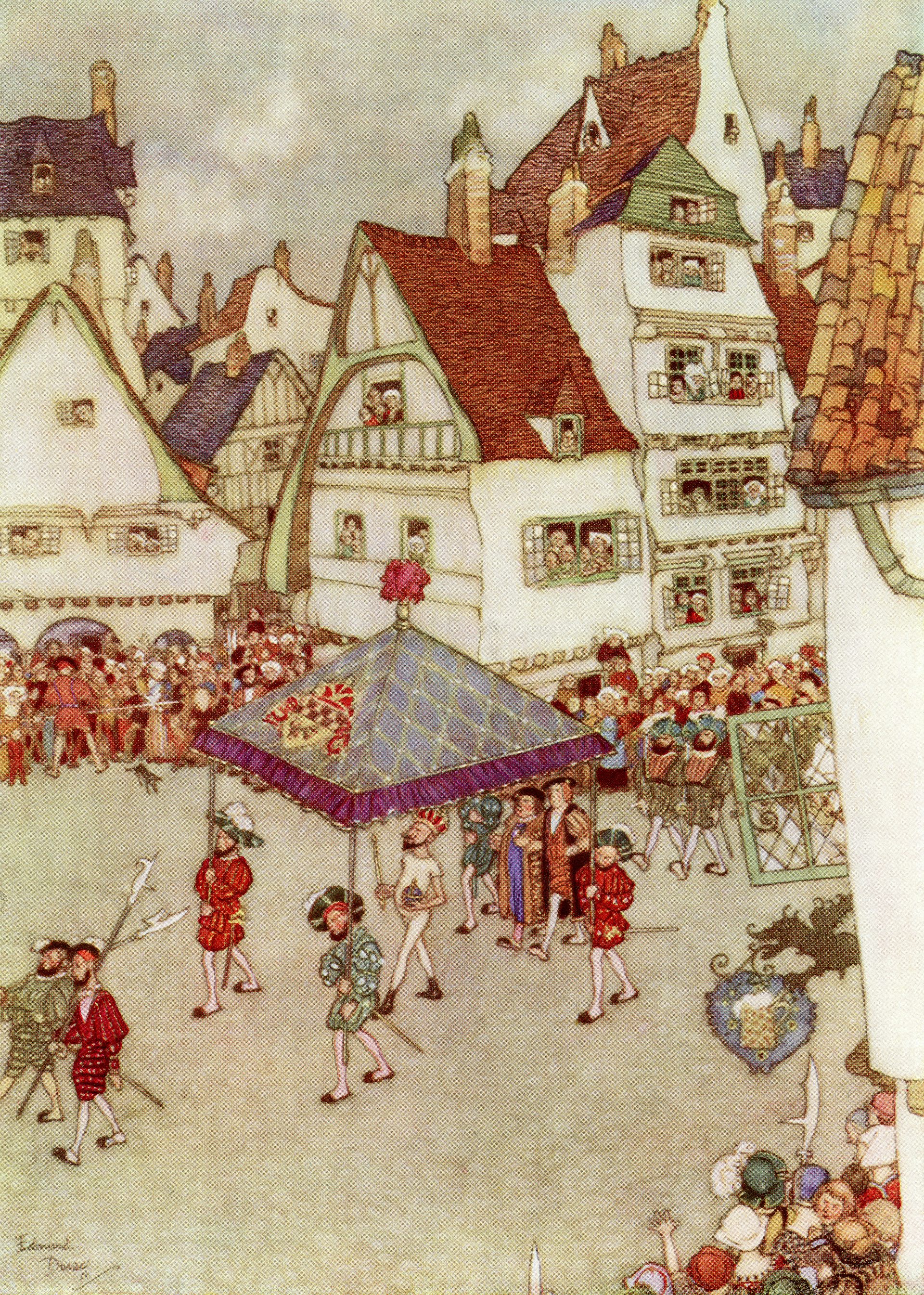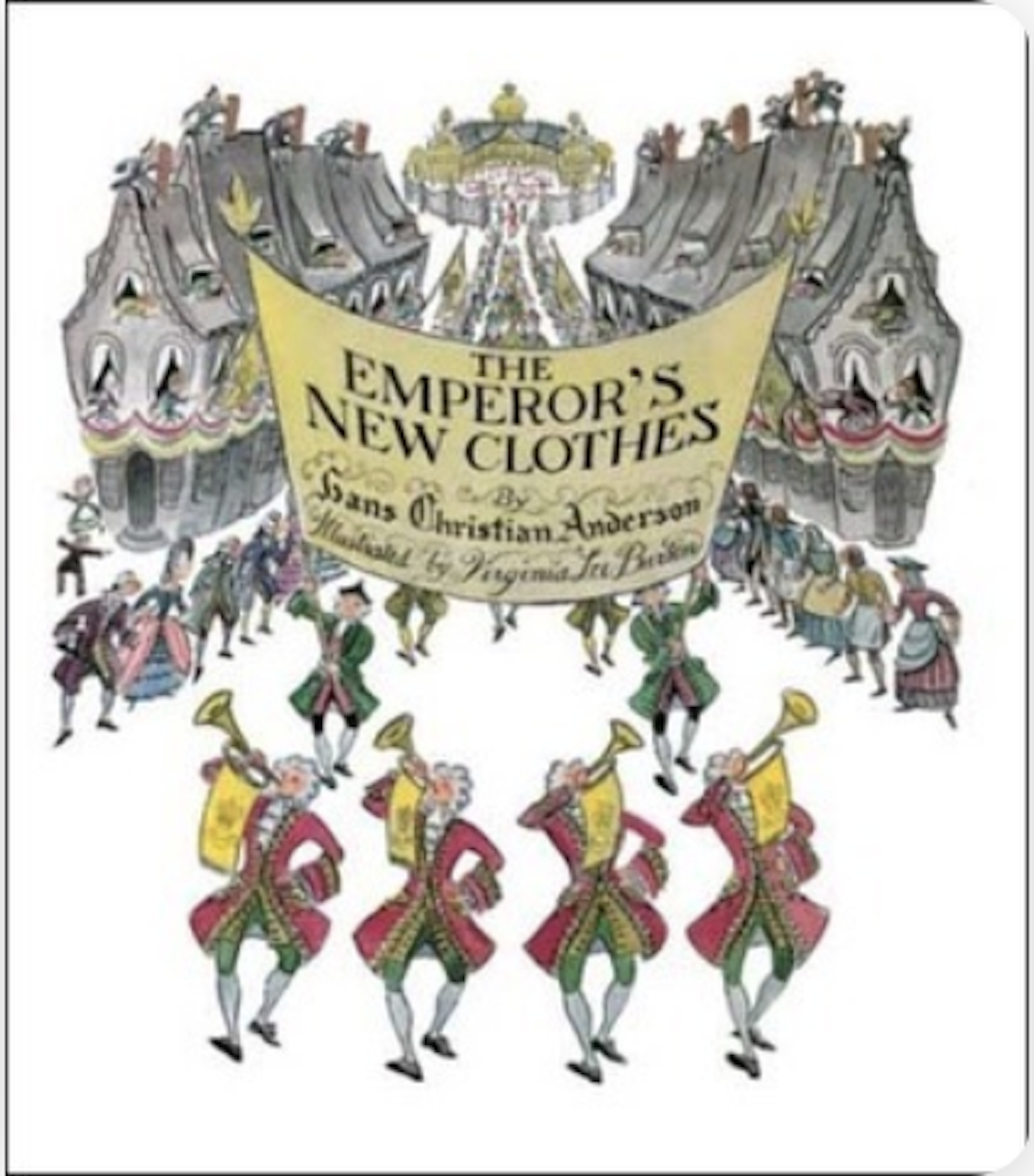 Once the “outfit” is finished, the emperor dons it and parades naked through the town. The townsfolk compliment the garments, until a small child bursts the bubble, yelling out that the emperor has no clothes.