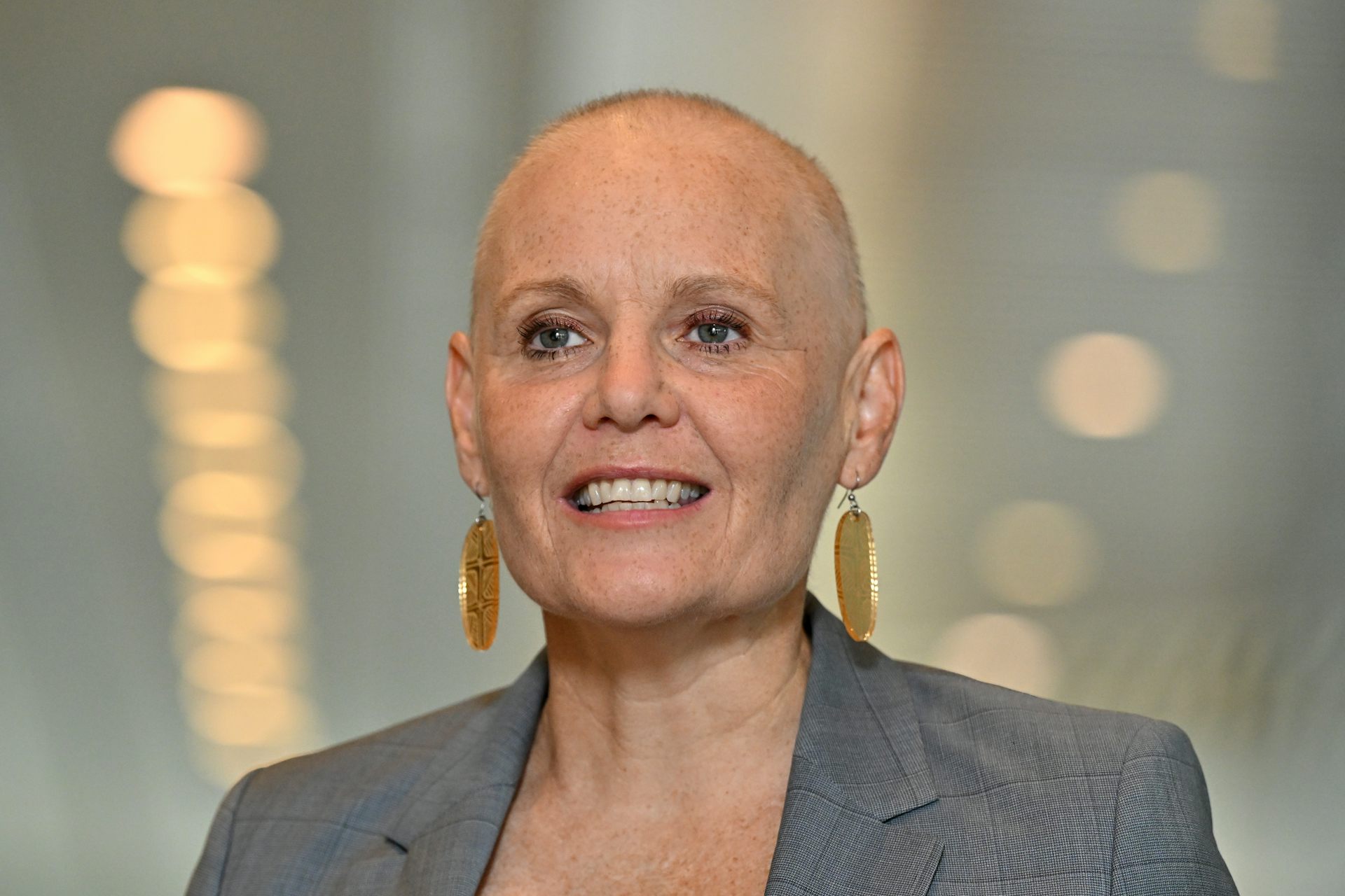 Peta Murphy at a press conference at Parliament House in Canberra in 2023.