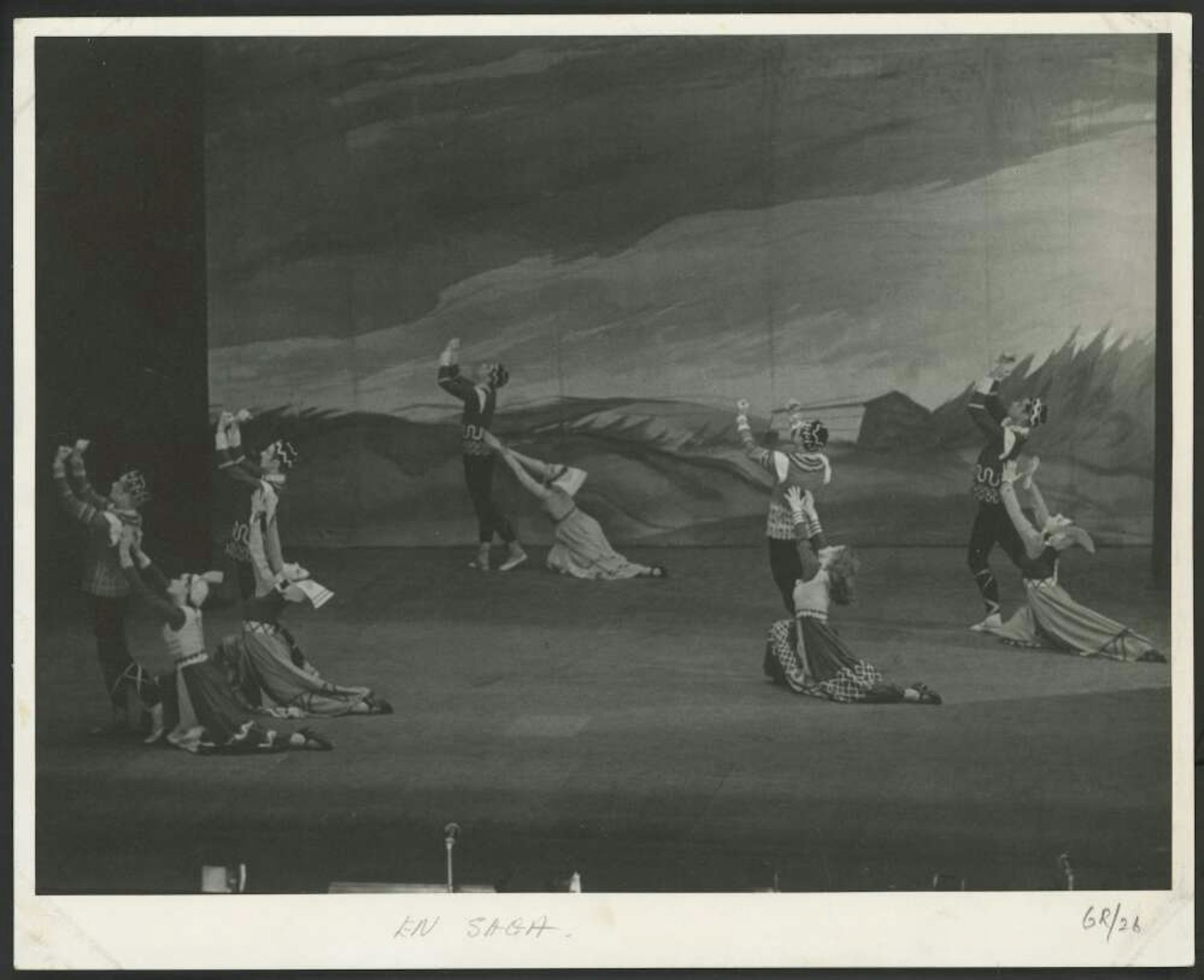 En Saga was choreographed by Laurel Martyn and first performed by the Borovansky Ballet in Melbourne in 1941.