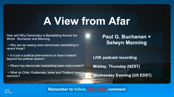 In this the seventh episode of A View from Afar podcast for 2023 political scientist Dr Paul Buchanan and Selwyn Manning will examine the strengths and weaknesses of democracy around the world.