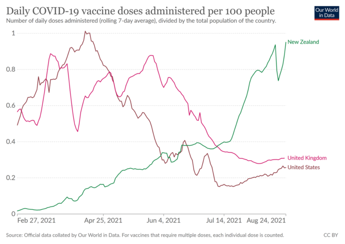 New Zealand’s vaccine rollout has accelerated over past weeks. We are now vaccinating around 1% of the population every day. But full protection from the vaccine only kicks in several weeks after the second dose.