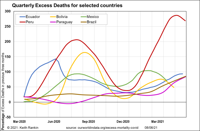 The massive disruption has provoked a fresh peak of coronavirus infections in 2021. Honduras has the lowest COVID-19 vaccination rate in Central America, to the point where mayors in seven cities near the border with El Salvador asked for and received vaccines from their Salvadoran counterparts.[28] Hondurans living near the Nicaraguan border are crossing it to get vaccinated.[29] Weakened by corruption and underfunding, the health service has been overwhelmed. In April, a senior doctor reported “the collapse of the hospital network” which is now on a “war footing.”[30] Of seven mobile hospitals ordered last year to fill the gaps, only two are working properly. The head of the agency which made the $47 million deal to buy the hospitals, accused of corruption, was sacked. People protested at one of the mobile units under the banner: “If it were a narco lab, it would be working.”[31]